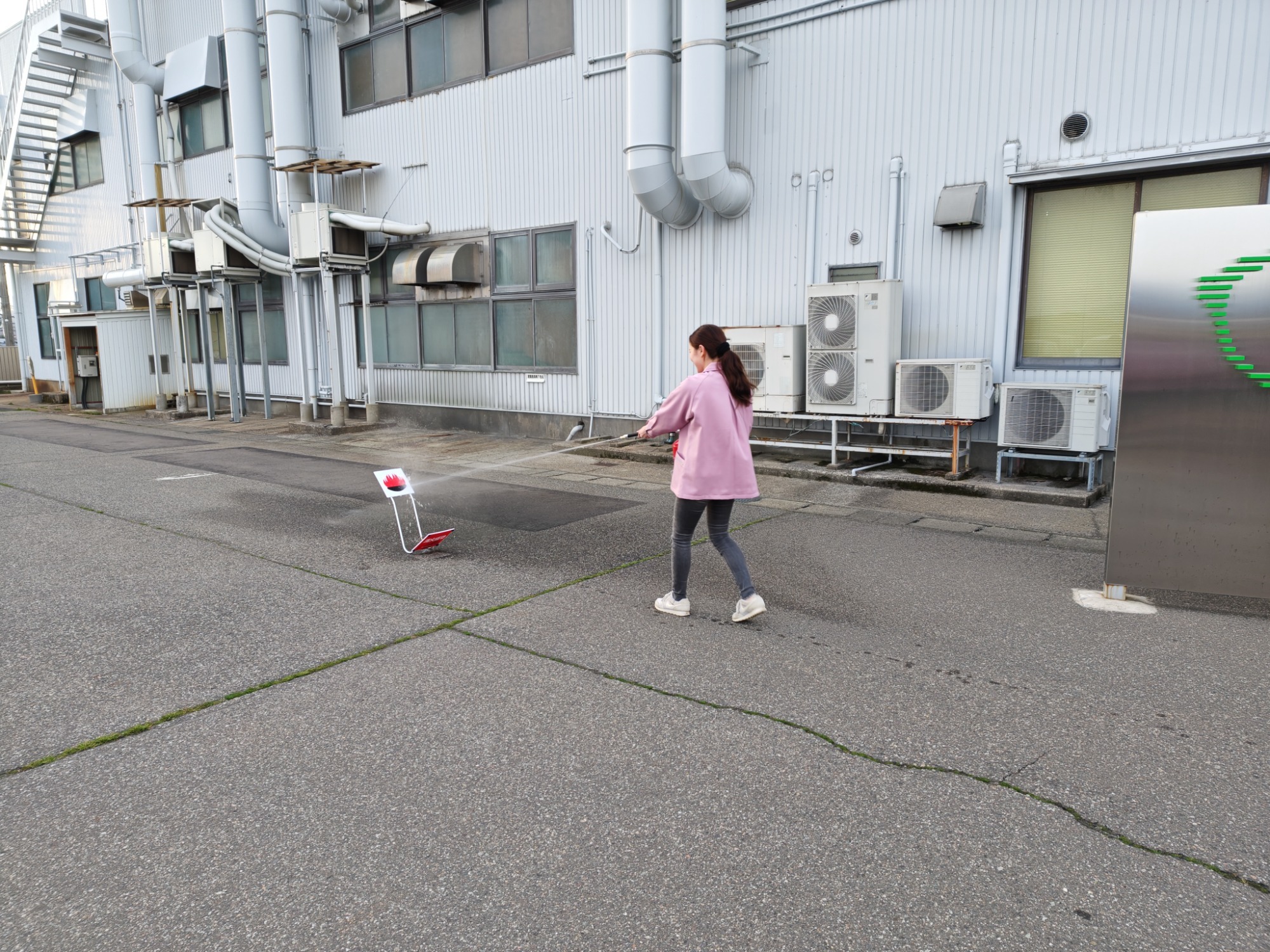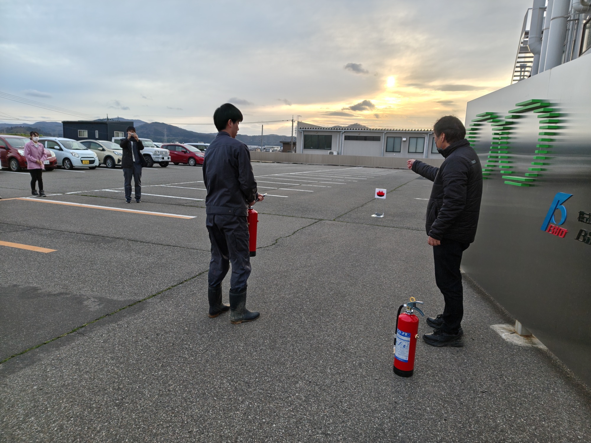消火器による消火訓練の模様